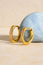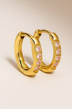 Lundholm Oorringen Dames Goudkleurig met Roze Zirkonia - Premium Stainless Steel - Kleine Luxe Hoops (1.1 cm) - Elegant & Tijdloos - Luxe Geschenkverpakking