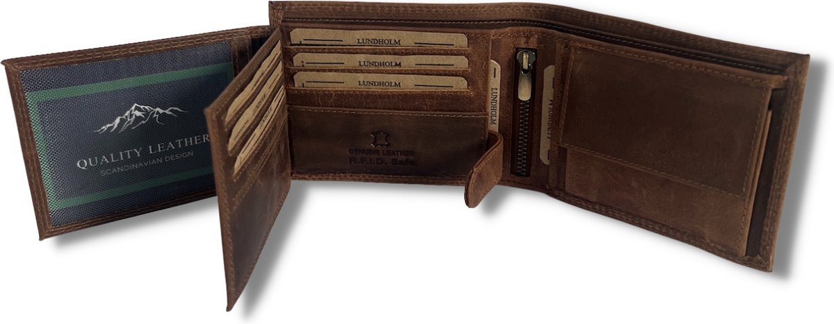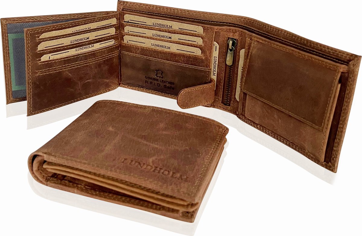 Lundholm billfold leren heren portemonnee met RFID bescherming - bruin