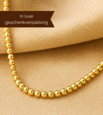 De Lundholm kralenketting combineert klassieke elegantie met moderne luxe. Deze ketting is gemaakt van premium stainless steel, uitgevoerd met holle kralen van 8 mm. De ronde vorm en de rijke gouden glans geven dit sieraad een tijdloze uitstraling die bij iedere gelegenheid past.