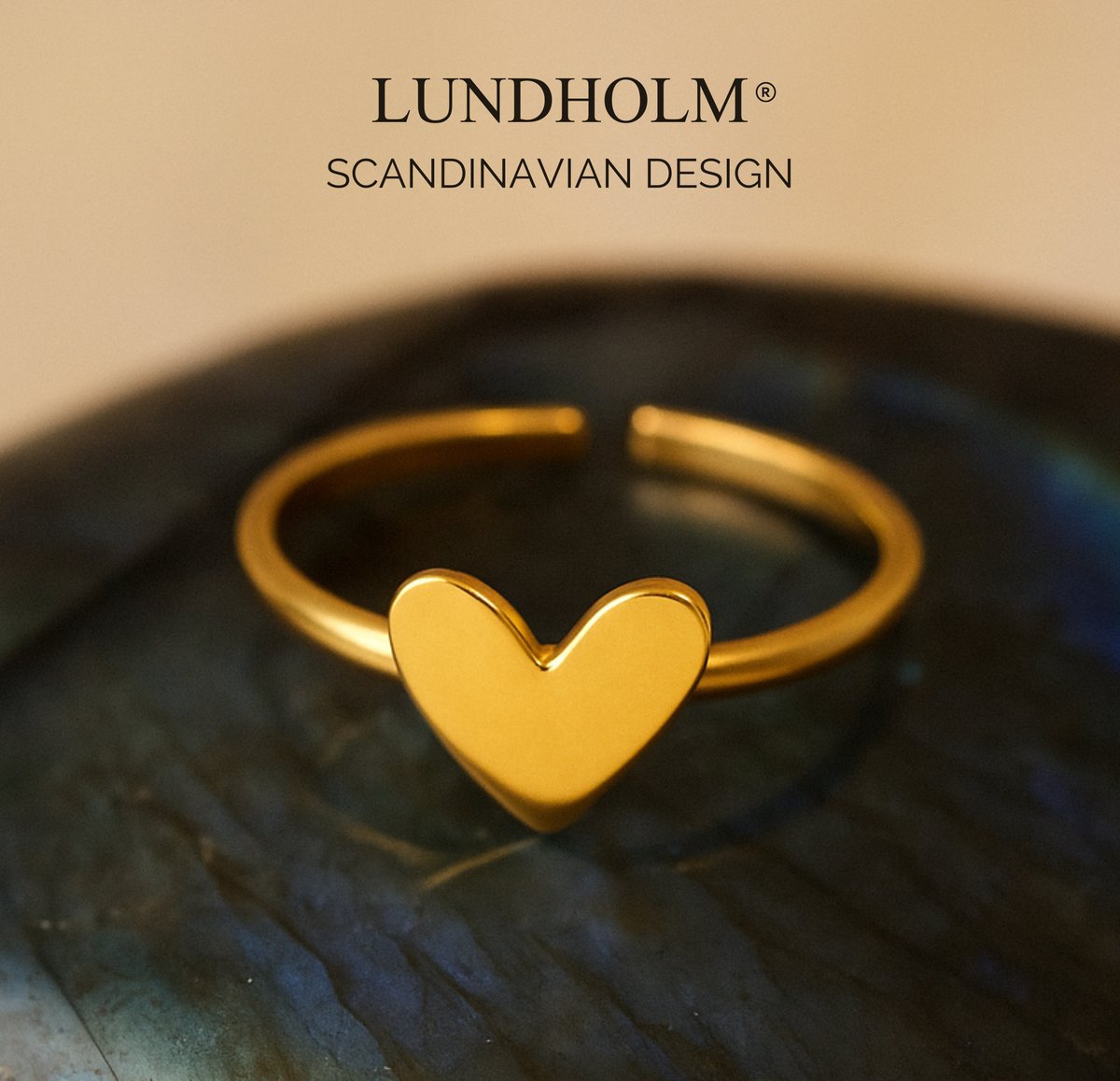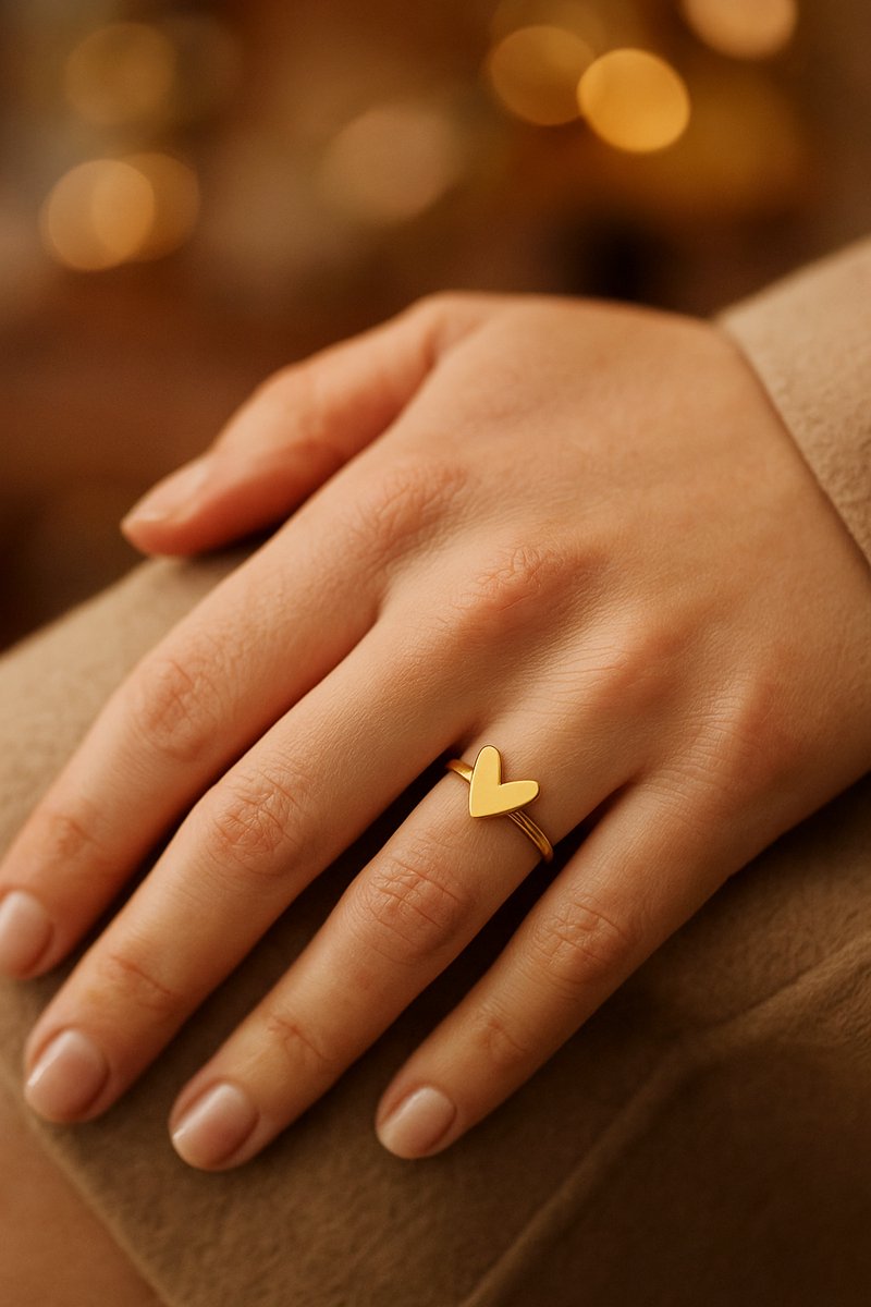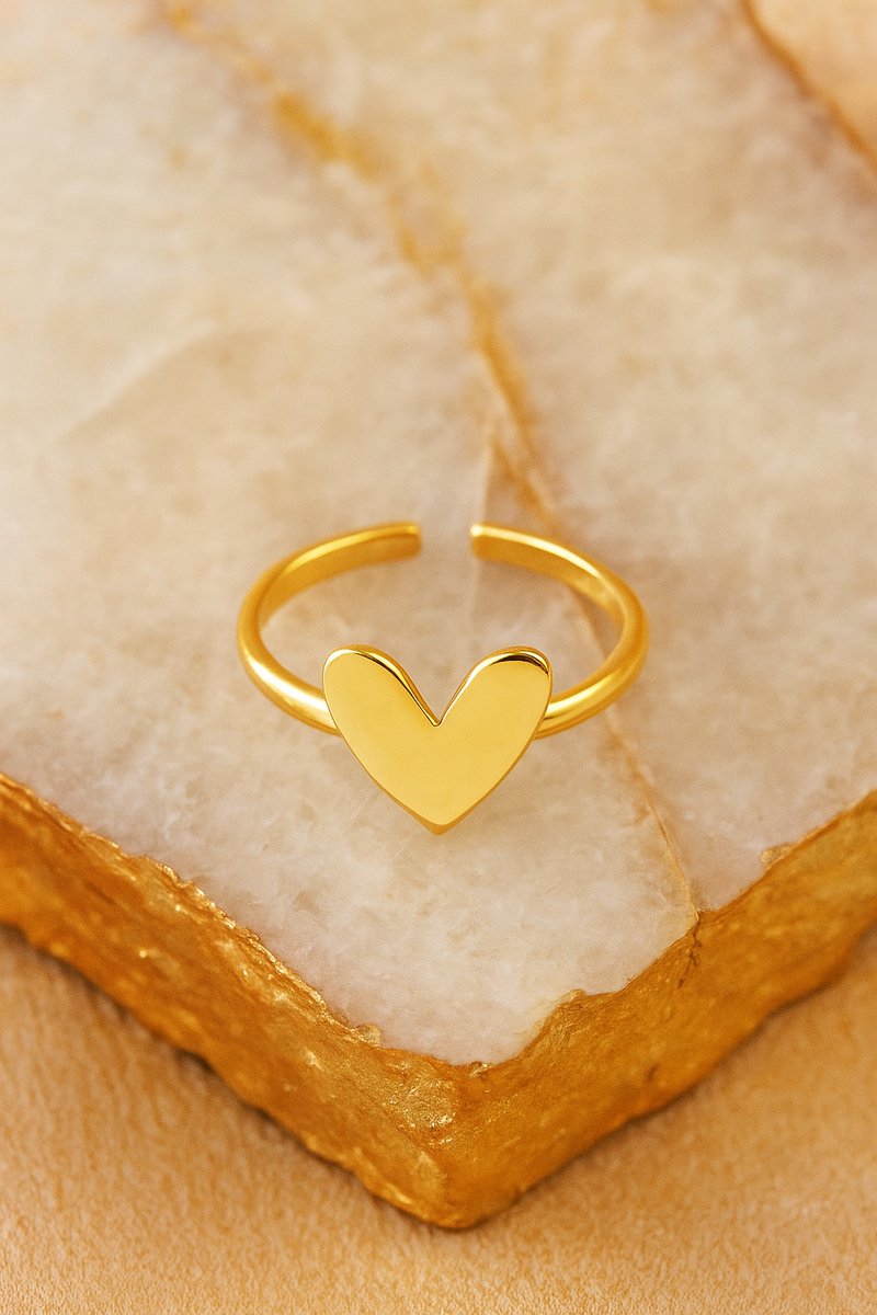 Lundholm Ring Dames Goudkleurig – Premium Stainless Steel – Verstelbare Ring met Subtiel Hartje – One Size – Betekenisvol & Elegant – Luxe Geschenkverpakking