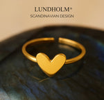 Lundholm Ring Dames Goudkleurig Hart – Premium Stainless Steel – Verstelbare Ring met Subtiel Hartje – One Size – Betekenisvol & Elegant – Cadeau voor Haar Kerst - Luxe Geschenkverpakking