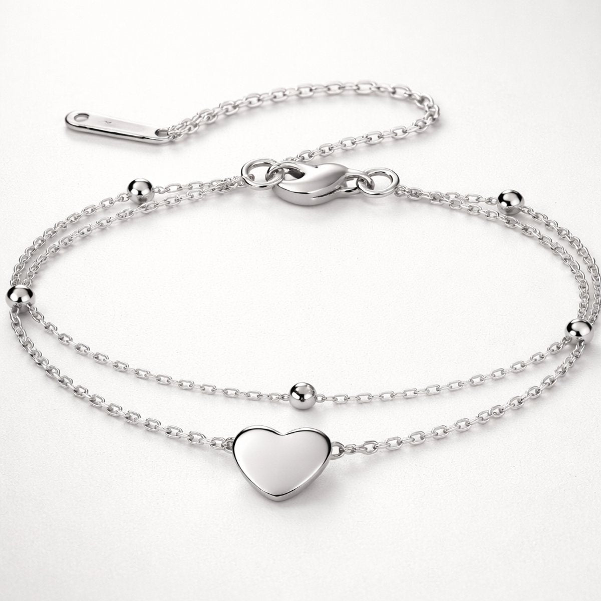 - Design: dubbel laags, schakels met bolletjes en hartje bedel