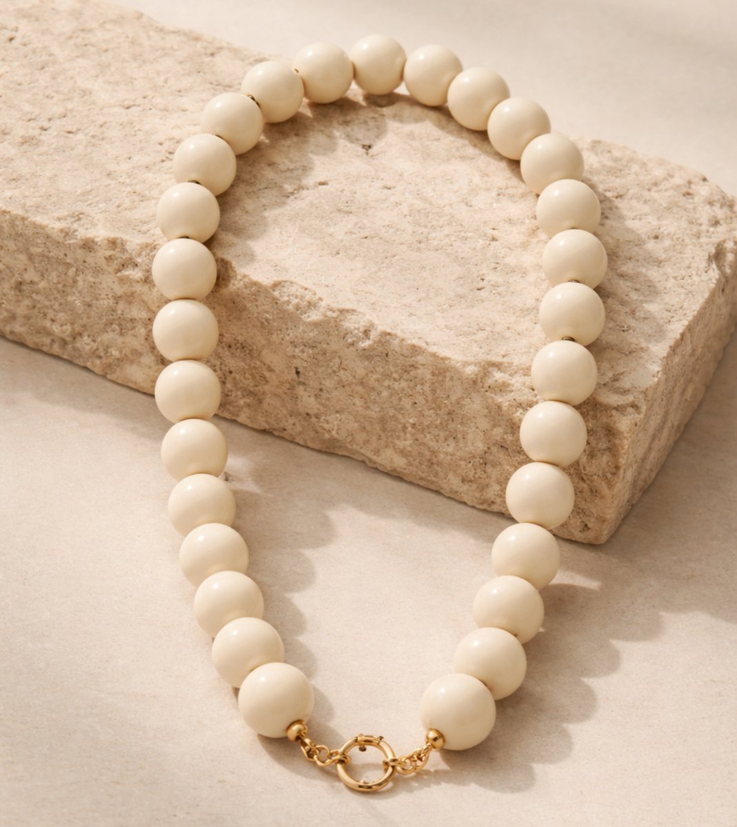 De beige Helsinki ketting is ideaal voor wie houdt van een zachte, natuurlijke look. Draag haar solo voor een minimalistische uitstraling of combineer met andere goudkleurige sieraden voor een gelaagde, moderne stijl. Deze kralen ketting dames is geschikt voor dagelijks gebruik, werk, etentjes en feestelijke gelegenheden.