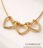 Lundholm Premium Stainless Steel Ketting Dames – Drie Hartjes – Gold Plated – Liefde & Valentijn Cadeau – 40 cm + 5 cm Verlengstuk – Inclusief Luxe Geschenkverpakking