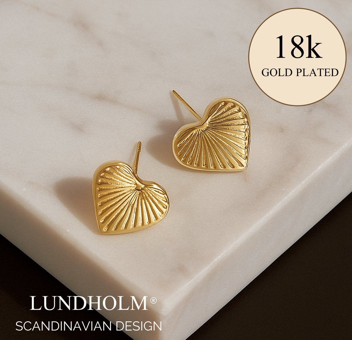 Lundholm Hartjes Oorstekers Dames – Premium Stainless Steel Verguld – Kleine Hartjes Oorbellen (1.9 x 1.7 cm) – Waterproof & Hypoallergeen – Inclusief Luxe Geschenkverpakking