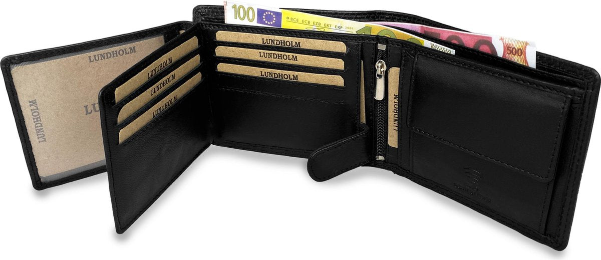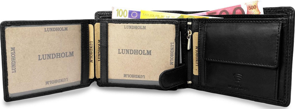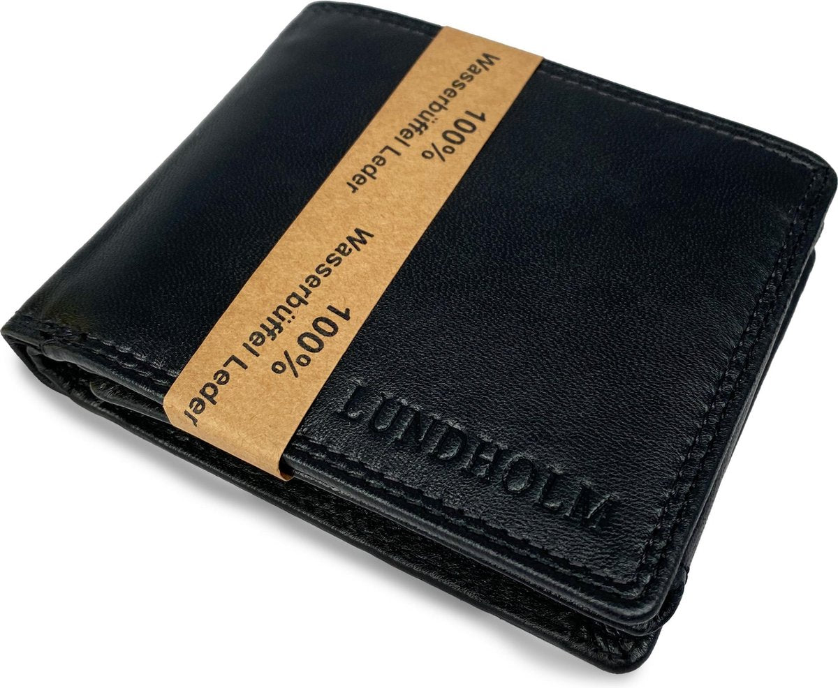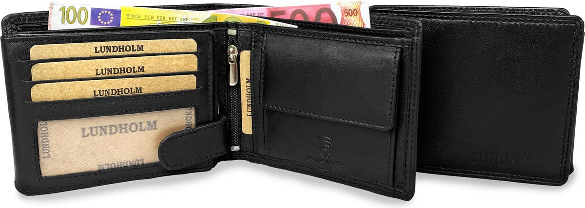 Lundholm RFID Leren heren portemonnee - Luxe Lederen Portefeuille - Cadeau voor Man - Zwart