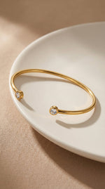 De Lundholm Fem armband is een elegante open bangle met aan beide uiteinden een verfijnde zirkonia steen. De combinatie van het minimalistische ontwerp en de subtiele schittering van de stenen geeft deze armband een zeer luxe en classy uitstraling. Scandinavisch design met een tijdloze en verfijnde touch.