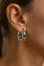 Maak een krachtig statement met deze zilverkleurige, dikke oorbellen van Lundholm. Gemaakt van premium stainless steel met hoogglans finish. Het sculpturale, afgeronde profiel van 3,4 × 3,2 cm oogt bold, terwijl de oorbellen hol en licht zijn—dus niet zwaar aan het oor en comfortabel voor de hele dag.