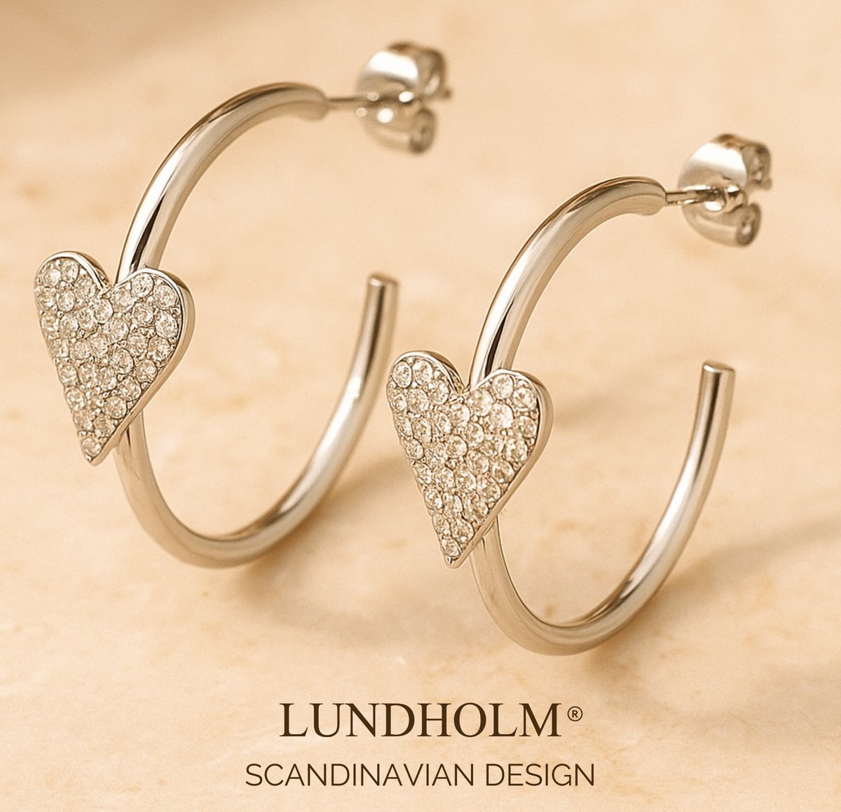 Lundholm staat voor kwaliteit, eenvoud en subtiele luxe. De combinatie van een slanke hoop met een glanzend hartje geeft een romantische, maar moderne uitstraling die moeiteloos matcht met knitwear, blazers en avondjurken.