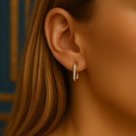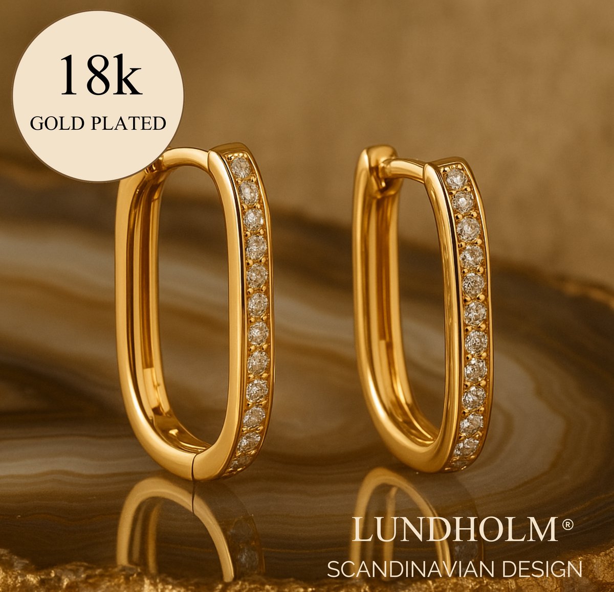 Lundholm Luxe Rechthoekige Oorbellen (2 x 1.3 cm) – Premium Stainless Steel, Verguld met Zirkonia – Geschenkverpakking
