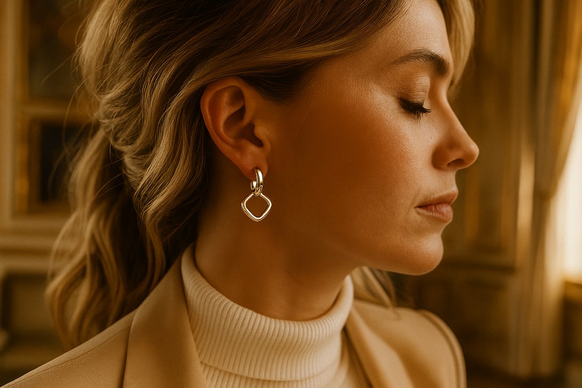 - Elegant design – oorring met vierkante hanger, classy & verfijnd